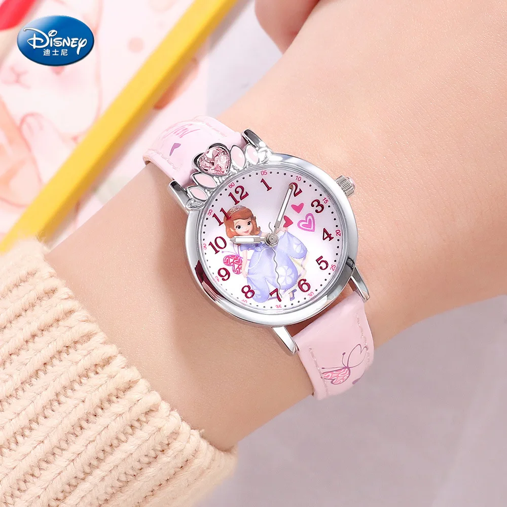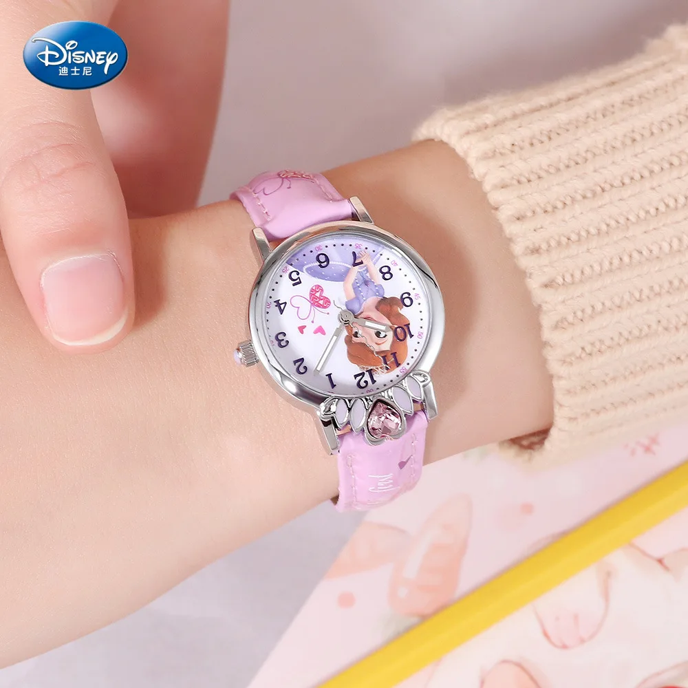 Disney Frozen Pricess Quartz Girl Wristwatch Diamond 3Bar Waterproof Simple Fashion Round Leather S