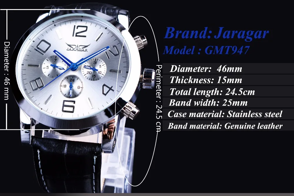BEST SELLER Jaragar 6 Blue Hands Display Fashion Design Silver Case Men Watches Top Brand Luxury Genuine Leathe