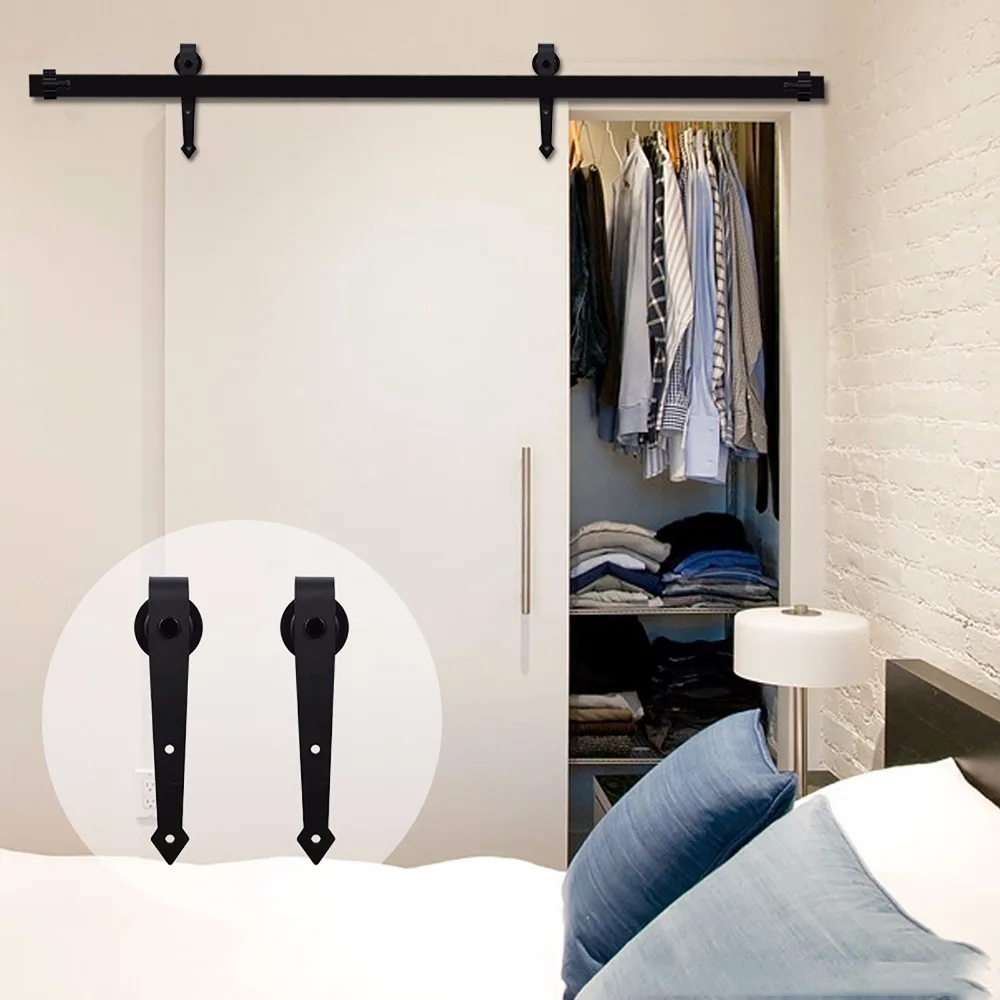 TOP LWZH 14ft/15ft Black Classic Rail Sliding Barn Door Track Hardware Sets Interior Door Sliding Barn