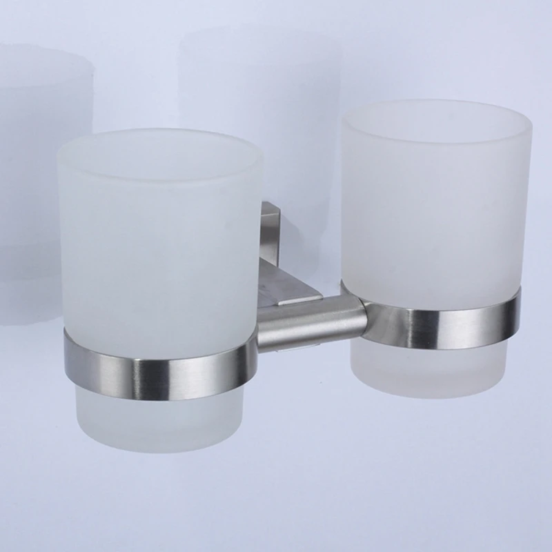 TOP Stainless Steel Cup Tumbler Holders Double Glass Cup Holders Wall-Mount Toothbrush Tooth Cup Holder
