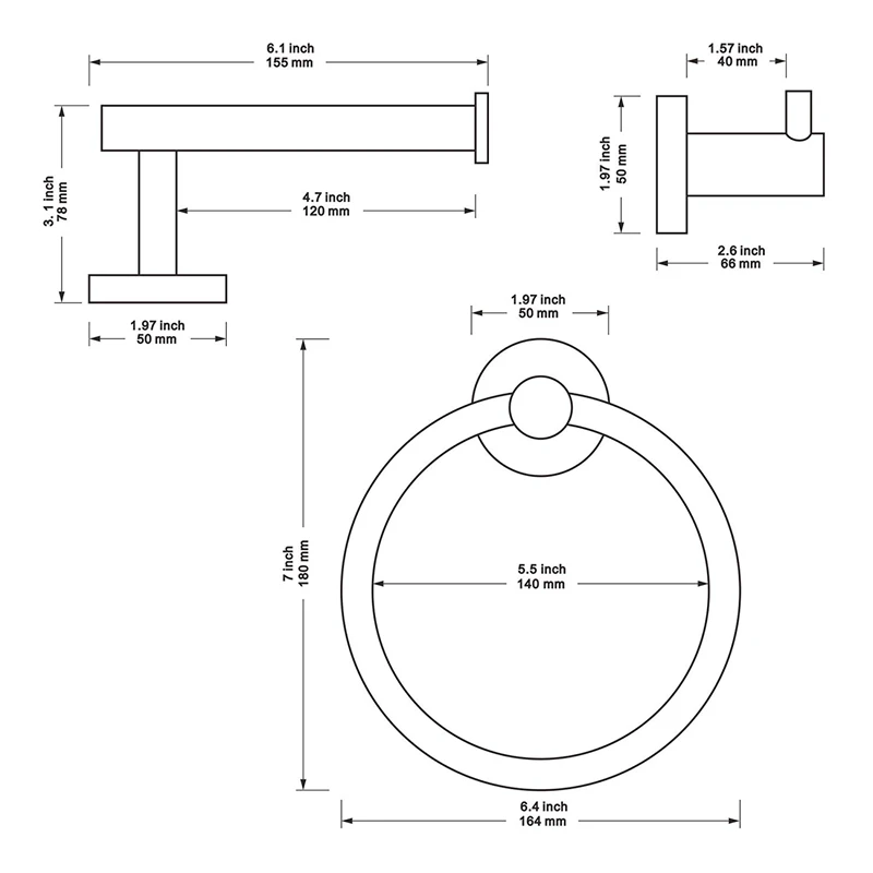 Bathroom Hardware Accessories Set 3-Piece Gold Brushed Bathroom Hardware Sets Modern Towel Ring Rob