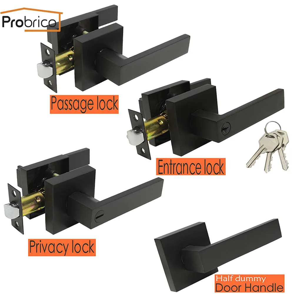 BEST QUALITY Probrico Black Door handles for Interior Doors Front back gate levers with lock cylinder/latch for