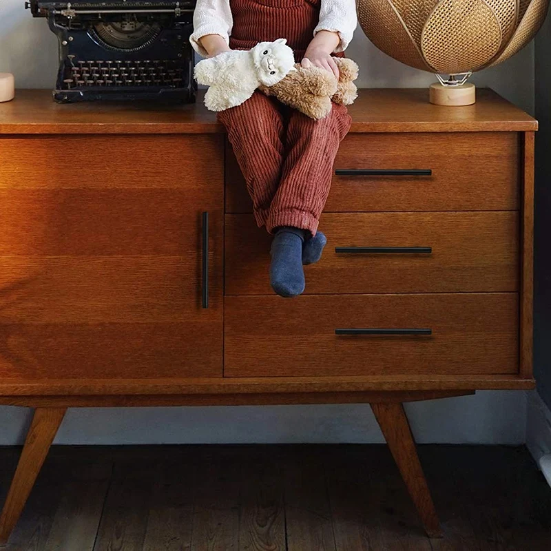 Flat Black Modern Cabinet Hardware Drawer Handle Kitchen Cupboard T Bar Pull Dresser Knobs Set Hole