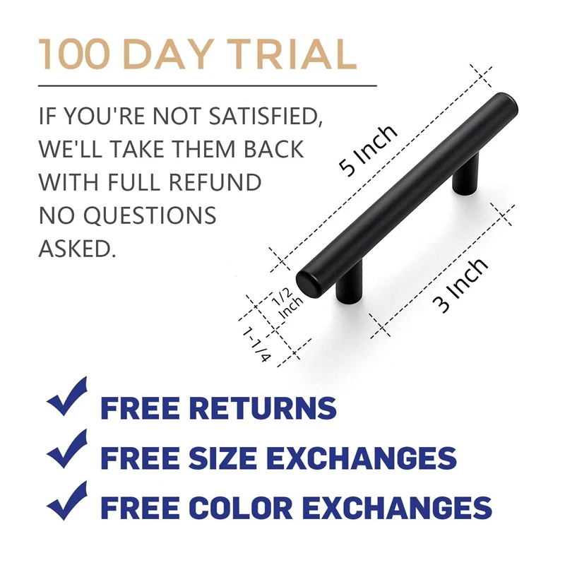 Best Quality Flat Black Modern Cabinet Hardware Drawer Handle Kitchen Cupboard T Bar Pull Dresser Knobs Set Hole